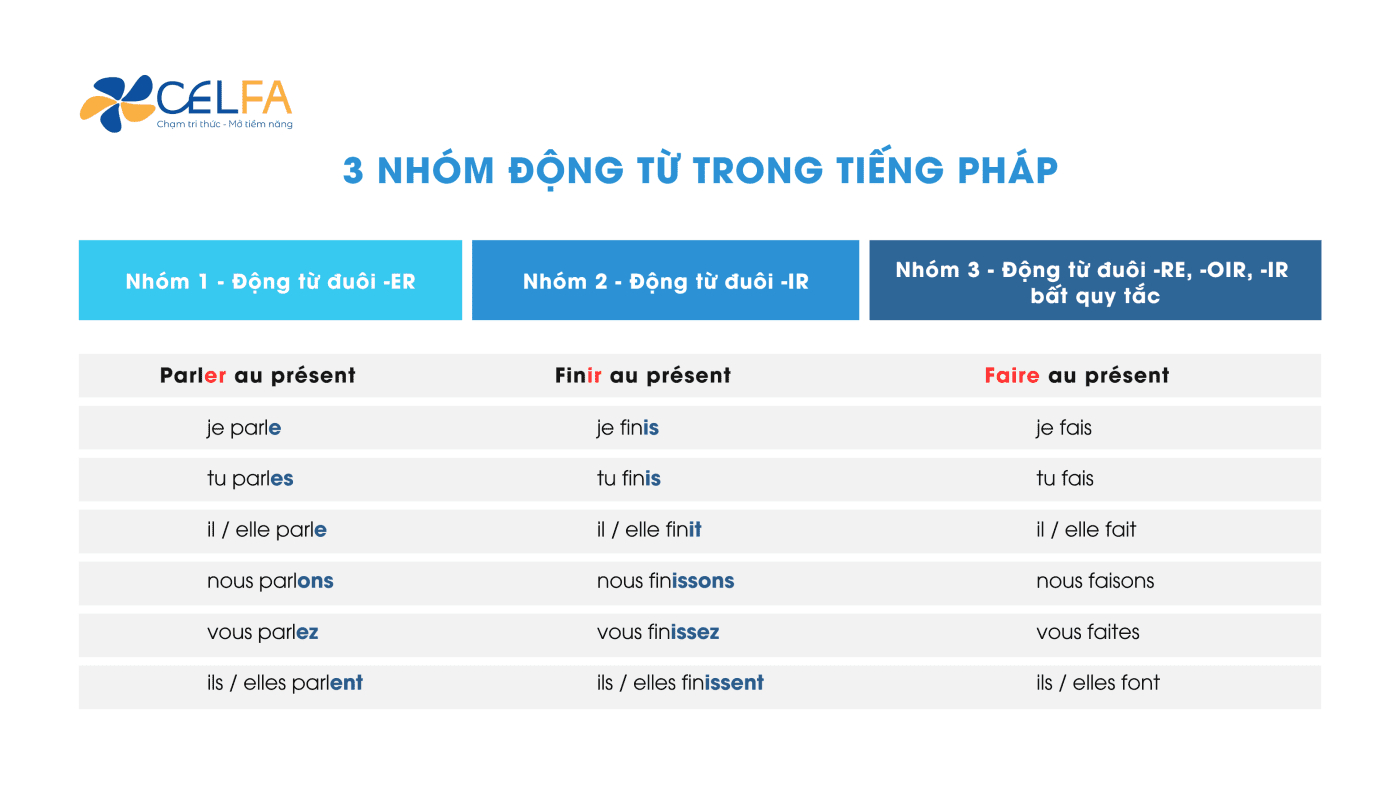 Tổng quan về 3 nhóm động từ trong tiếng Pháp